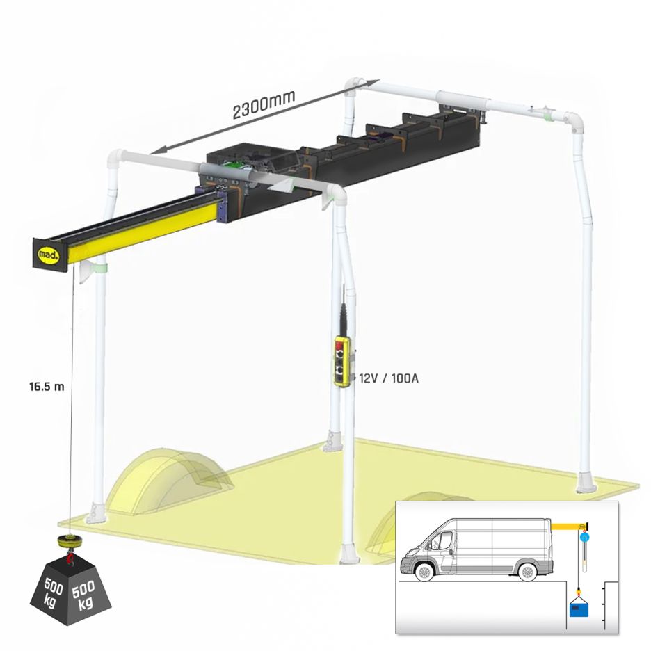 Cu o capacitate de nu mai puțin de 500 de kilograme, este ideal pentru mutarea utilajelor grele de care este nevoie la renovarea sistemului de canalizare. Brațul are o rază de acțiune maximă de 16.5 m în spatele vehiculului.