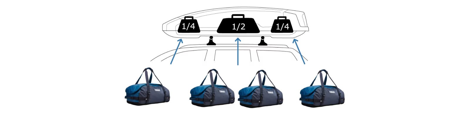 Majoritatea cutiilor portbagaj Thule pot fi utilizate cu barele transversale de plafon Thule, deși unele necesită un adaptor suplimentar.