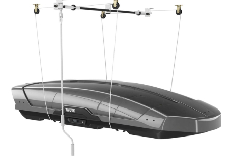 Ai nevoie de un loc unde să depozitezi cutia portbagaj în afara sezonului? Suportul pentru depozitarea cutiei portbagaj Thule MultiLift îți permite să agăți cutia de plafon, caiacul sau alte echipamente de tavanul garajului atunci când nu le folosești.