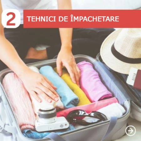 Optează pentru rularea hainelor în locul împăturirii, pentru a economisi spațiu și a reduce cutele. Investește în saci de vidat, care îți permit să comprimi hainele. Pune pantofii în pungi pentru a proteja de murdărie hainele din bagaj și, în același timp, pentru a optimiza spațiul din acesta. |