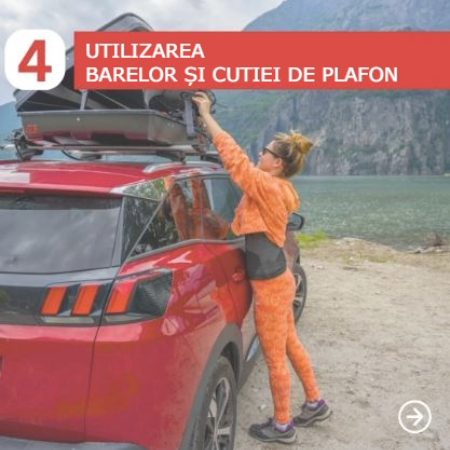 Atunci când folosești o cutie de plafon pentru acoperiș, împachetarea strategică este esențială. Pune obiectele voluminoase, dar ușoare în cutia portbagaj pentru a optimiza spațiul. Stivuiește obiectele vertical pentru a profita de înălțimea cutiei. Barele de acoperiș nu servesc doar pentru montarea cutiei pe vehicul; poți, de asemenea, să fixezi obiecte cu curele elastice sau chingi pentru lucrurile care nu încap în cabina mașinii sau în cutia de bagaje. |