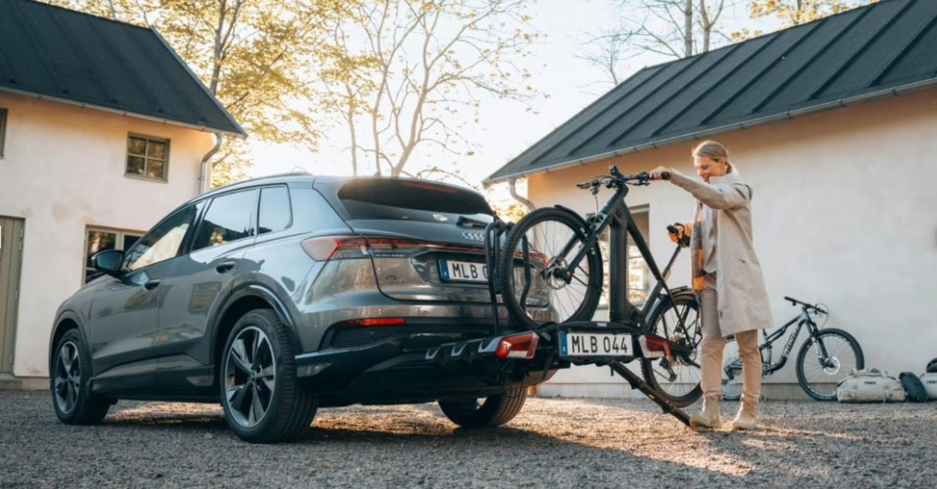 Gama variată de accesorii adaugă confort și versatilitate. Descoperiți accesoriile: cutie portbagaj Thule Santu pentru capacitatea de încărcare, accesoriul Thule pentru biciclete pliabile, rampele pliabile Thule pentru încărcare ușoară pe suport a bicicletei, lacătul de înaltă calitate Thule (pentru patru biciclete) pentru siguranță și geanta de depozitare Thule (cu buzunar pentru accesorii pliabile) pentru călătorii și depozitare.
