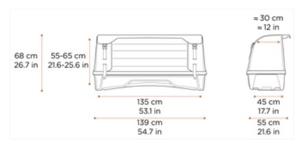 - Dimensiuni exterioare (L x W x H): 139 x 55 x 68 cm