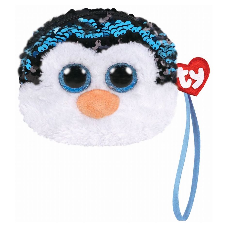 Gentuta de mana din plus ty 10cm pinguinul waddles cu paiete