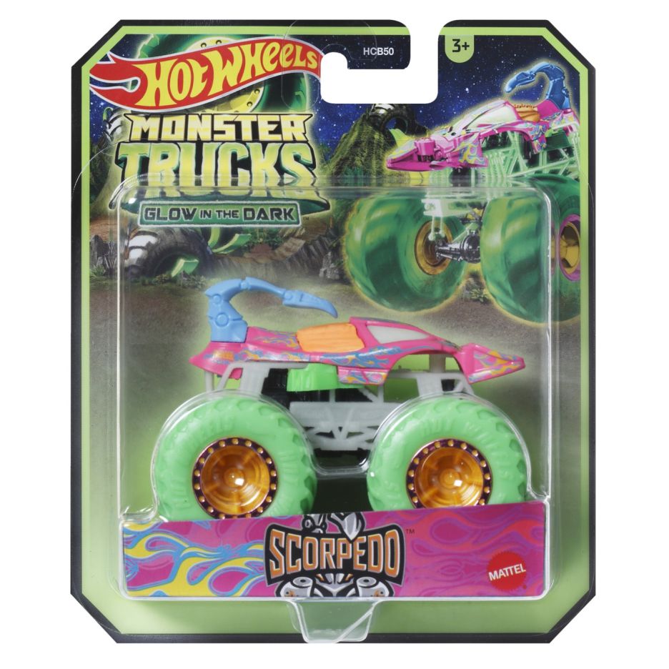 Hot wheels monster truck glow in the dark masinuta scorpedo scara 1:64