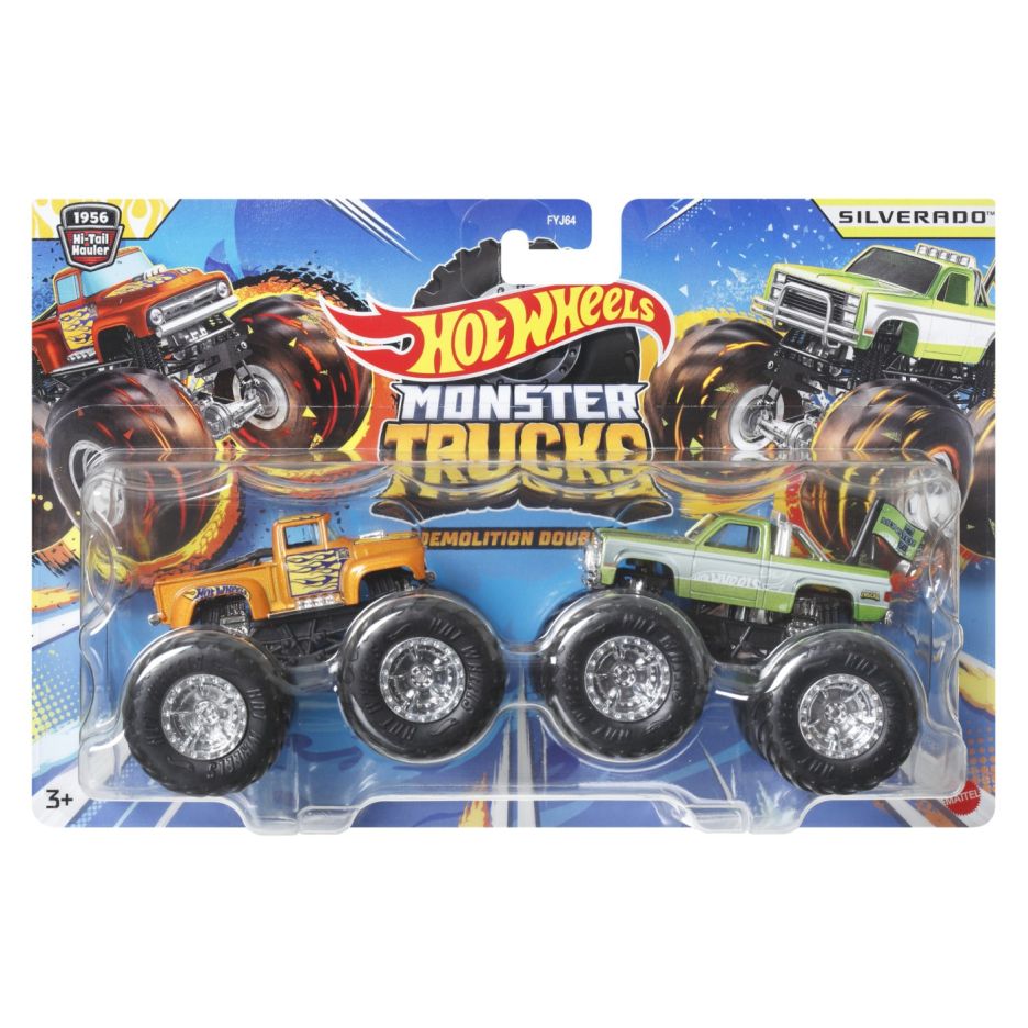 Hot wheels monster truck set 2 masini scara 1 la 64 hi-tail hauler si silverado