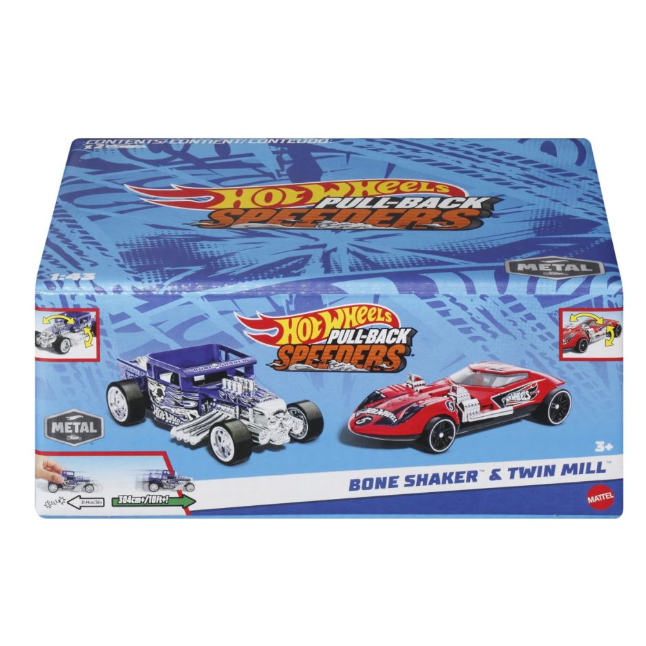 Hot wheels set 2 masinute metalice pull back bone shaker si twin mill 1:43