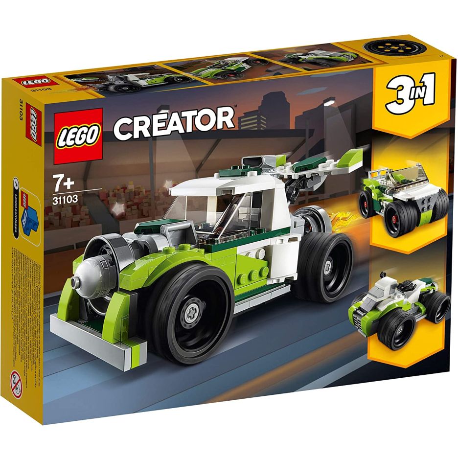 imbogateste imaginatia fanilor vehiculelor cu acest set de jucarie LEgO Creator 3in1 Camion Racheta (31103).