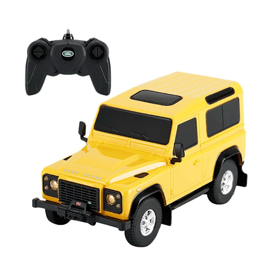 Masina cu telecomanda land rover defender galben cu scara 1 la 24