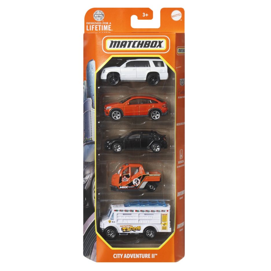Matchbox set 5 masinute metalice mbx city adventure ii scara 1:64