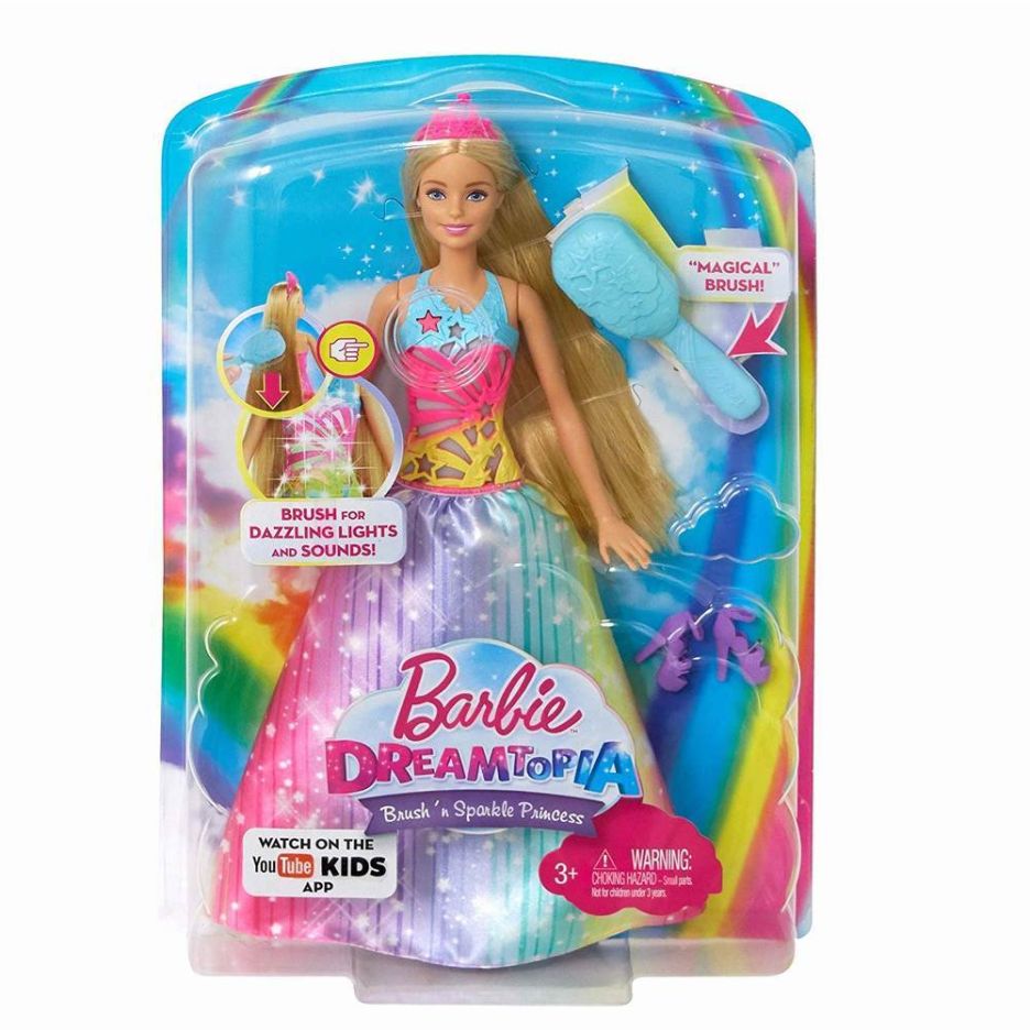 Papusa barbie cu perie si rochita multicolora