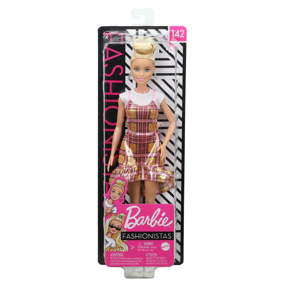 Papusa barbie fashionista blonda parul in coc