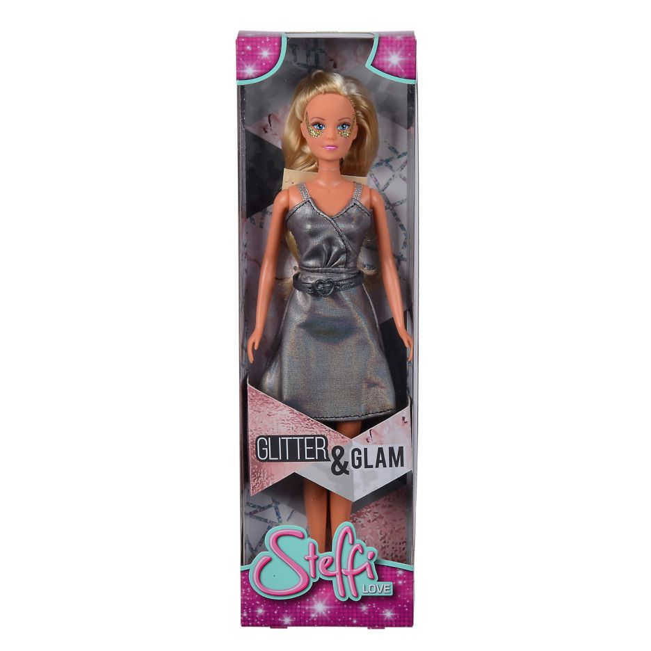 papusa steffi glitter glam cu rochie gri