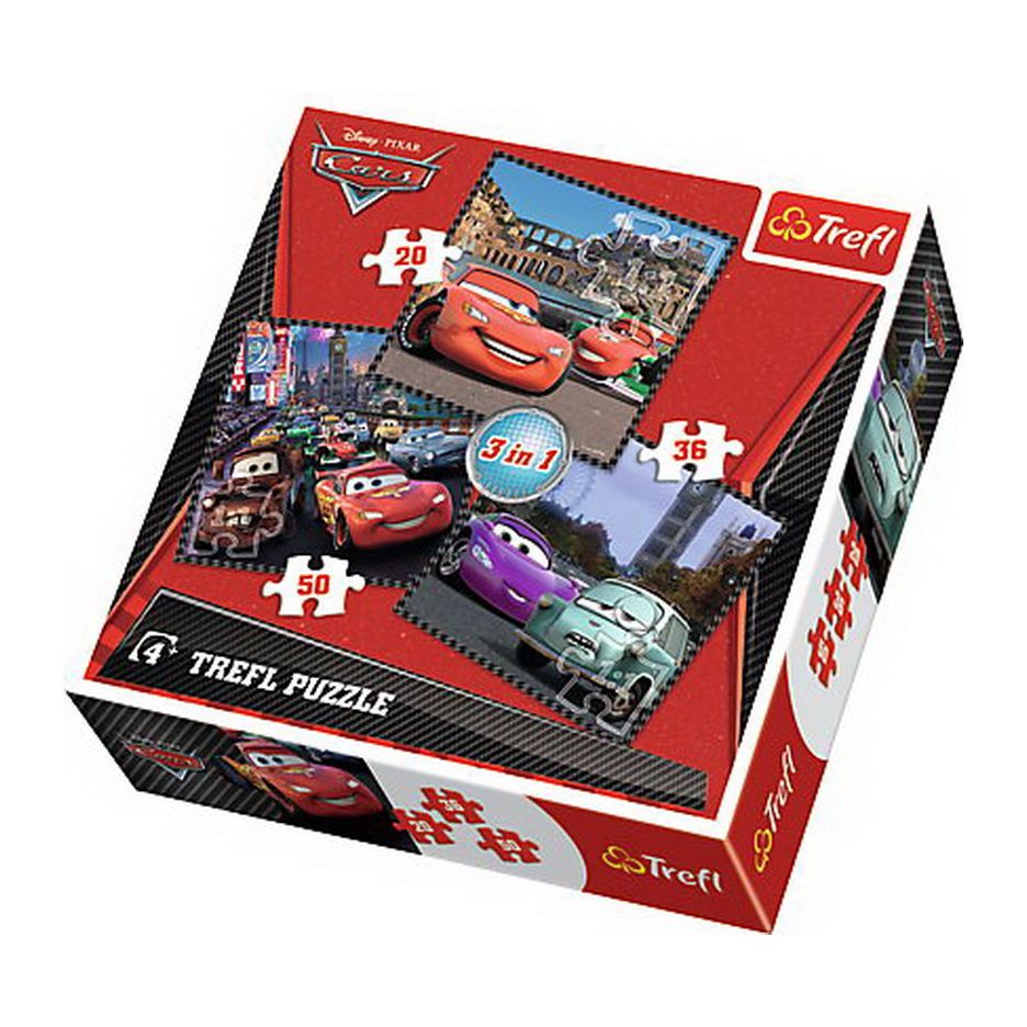 Puzzle trefl 3in1 calatorind in europa cars