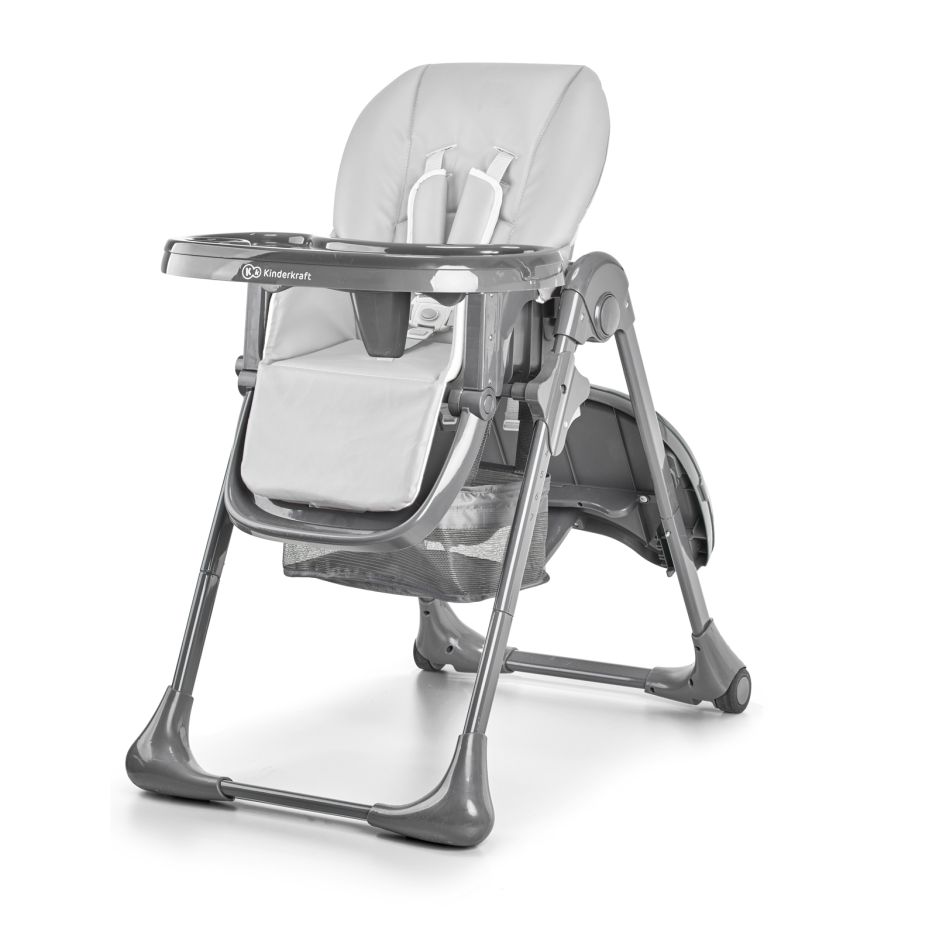 Scaun de masa Kinderkraft TASTEE, pliabil, GREY TASTEE GREY este un scaun de masa inalt, pliabil, cu un cos practic pentru maruntisuri - perfect pentru apartamente mici.