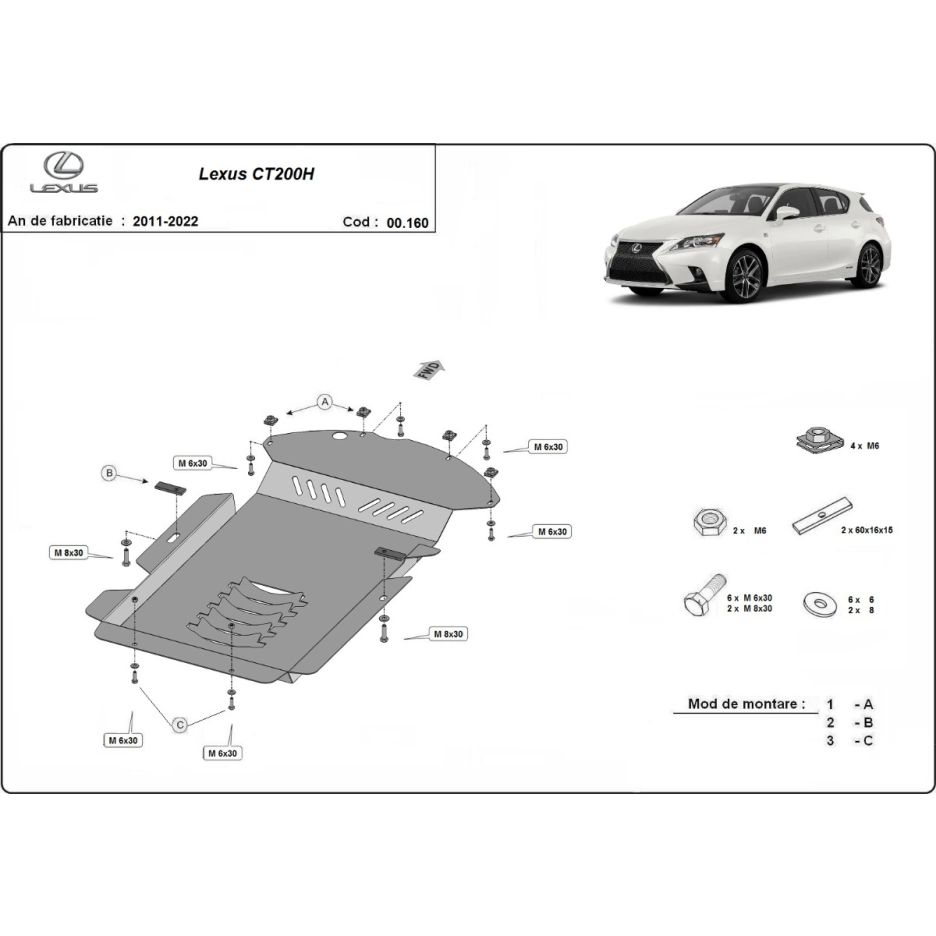 Scut antifurt catalizator pentru Lexus CT200H, ani fabricatie 2011-2023