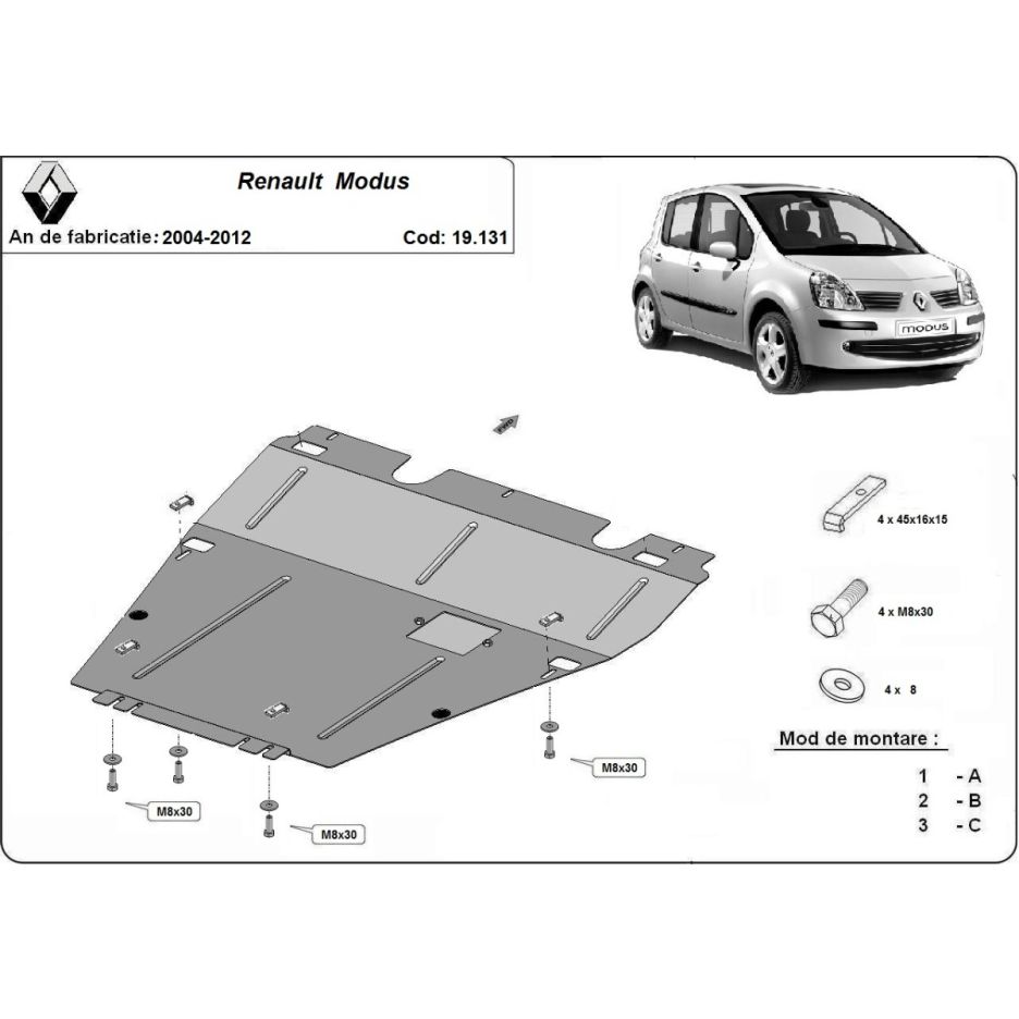 Scut motor metalic Renault Modus, ani fabricatie 2004-2012