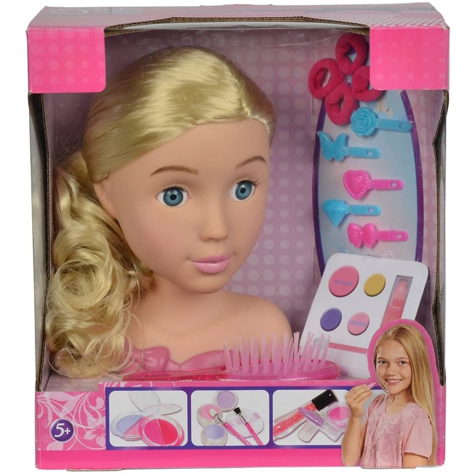 Set bust papusa cu parul blond si accesorii infrumusetare