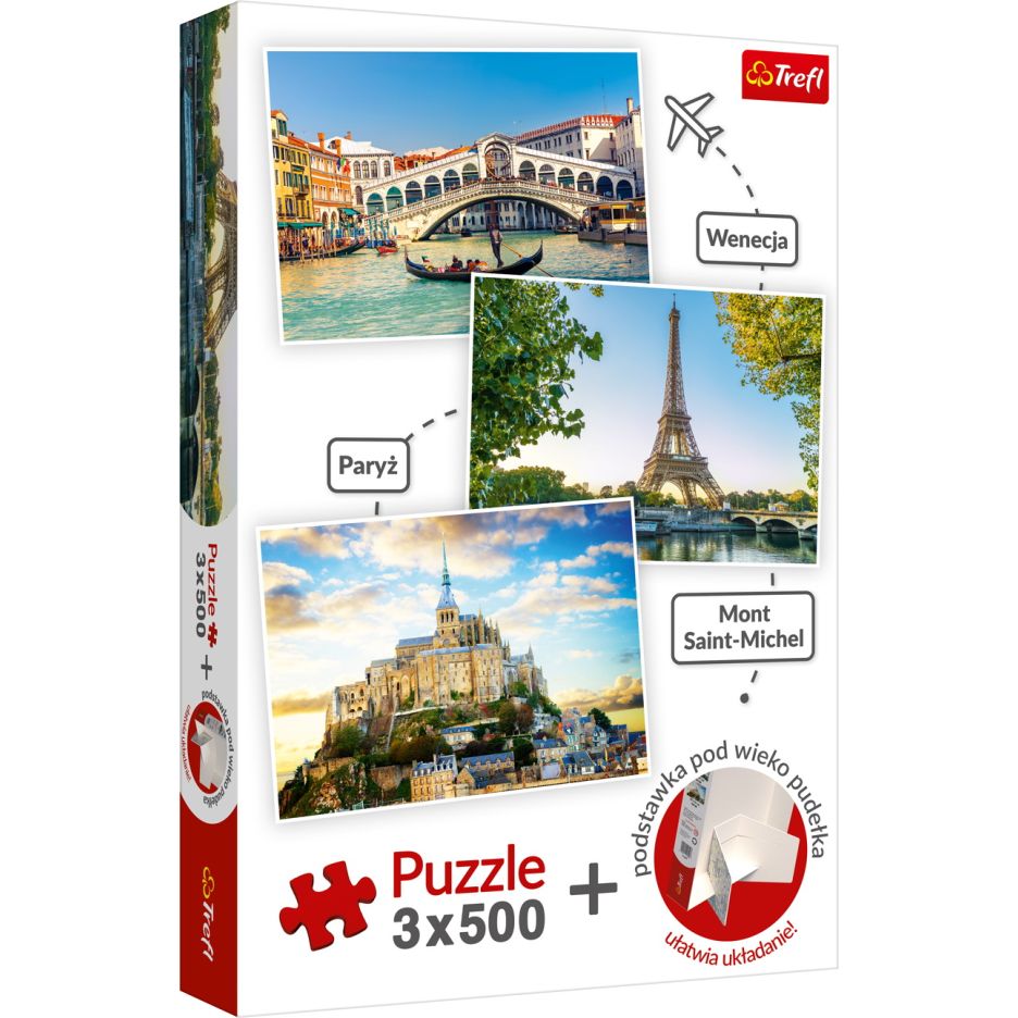Set puzzle trefl 3 x 500 venetia paris mont saint-michel